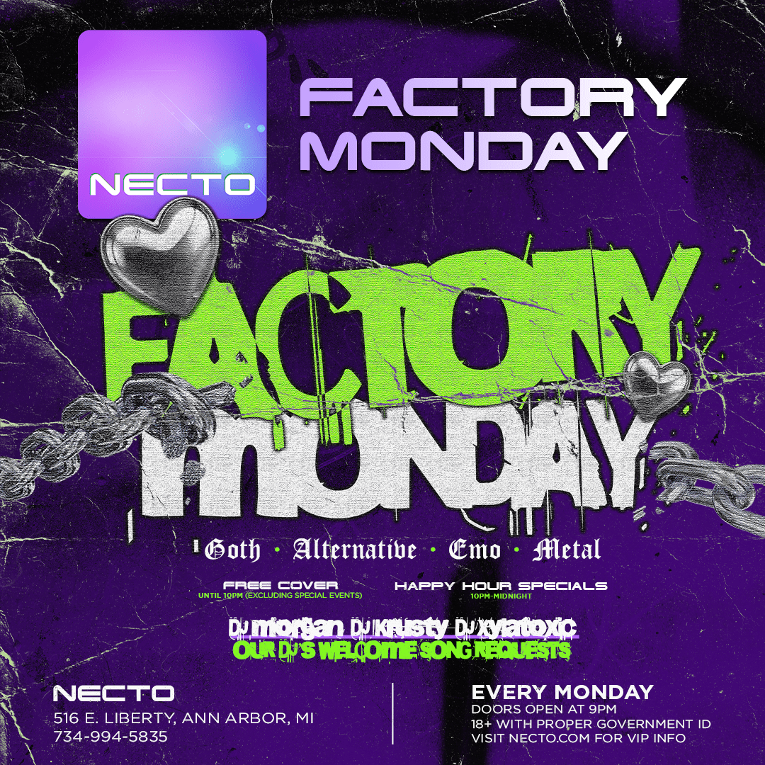 Step into the dark and mysterious world of Factory Mondays. Established in 2004, Factory is an internationally known Goth-Industrial night. We transform our space into a haven for all things goth, emo, metal, and alternative. With a moody atmospheric vibe, our club is the perfect place to express yourself and let loose.